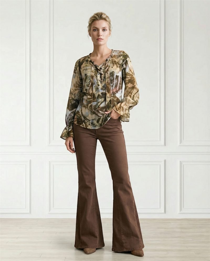 • Fit: Silhouette fluida con maniche lunghe rifinite da un delicato volant al polso, che aggiunge un dettaglio romantico e dinamico.