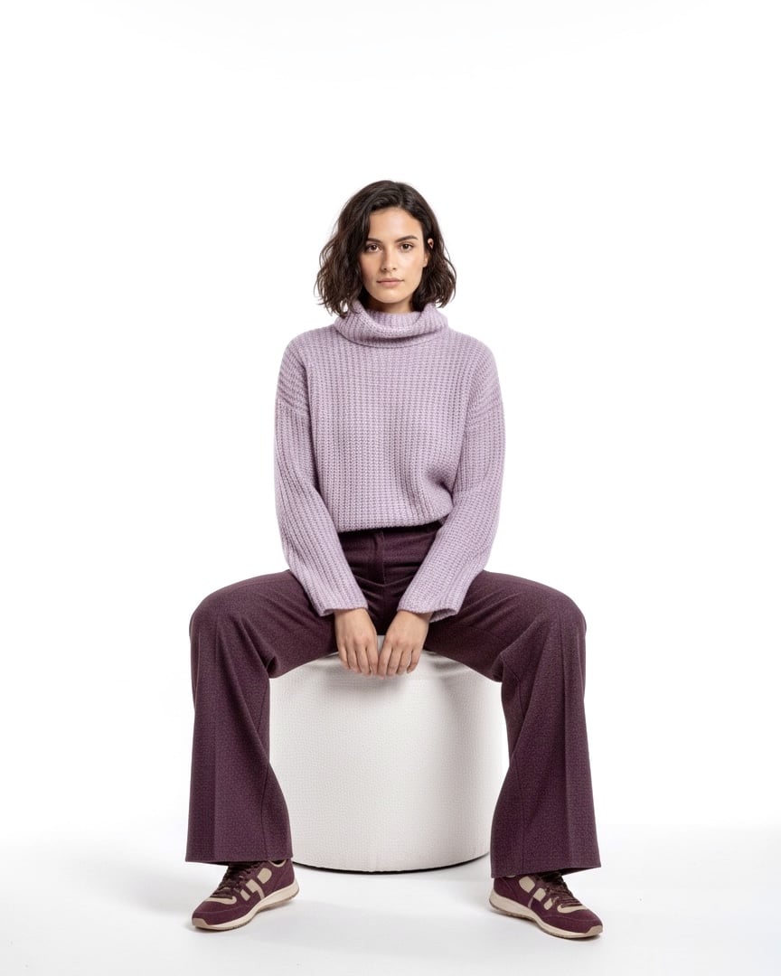 Maglia in cachemire quattro fili con collo alto, lavorazione costa inglese.